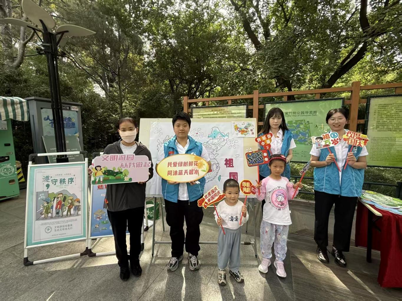 天气微凉、景色怡人,正是出游好时节。北京动物园装扮喜庆的大红灯笼,花境、花钵、动物小品点缀到地栽景观中,科普馆、狮虎山等处主题花坛创意十足,增添喜庆的节日氛围。国庆节当天,游客纷纷在“万生之缘”主题花境,手持“我爱祖国”“萌兰邀请你打卡观礼椅”打卡阅兵观礼座椅。同时,公园通过寓教于乐的方式,积极倡导文明游园理念,邀请游客文明游园,争做文明使者。