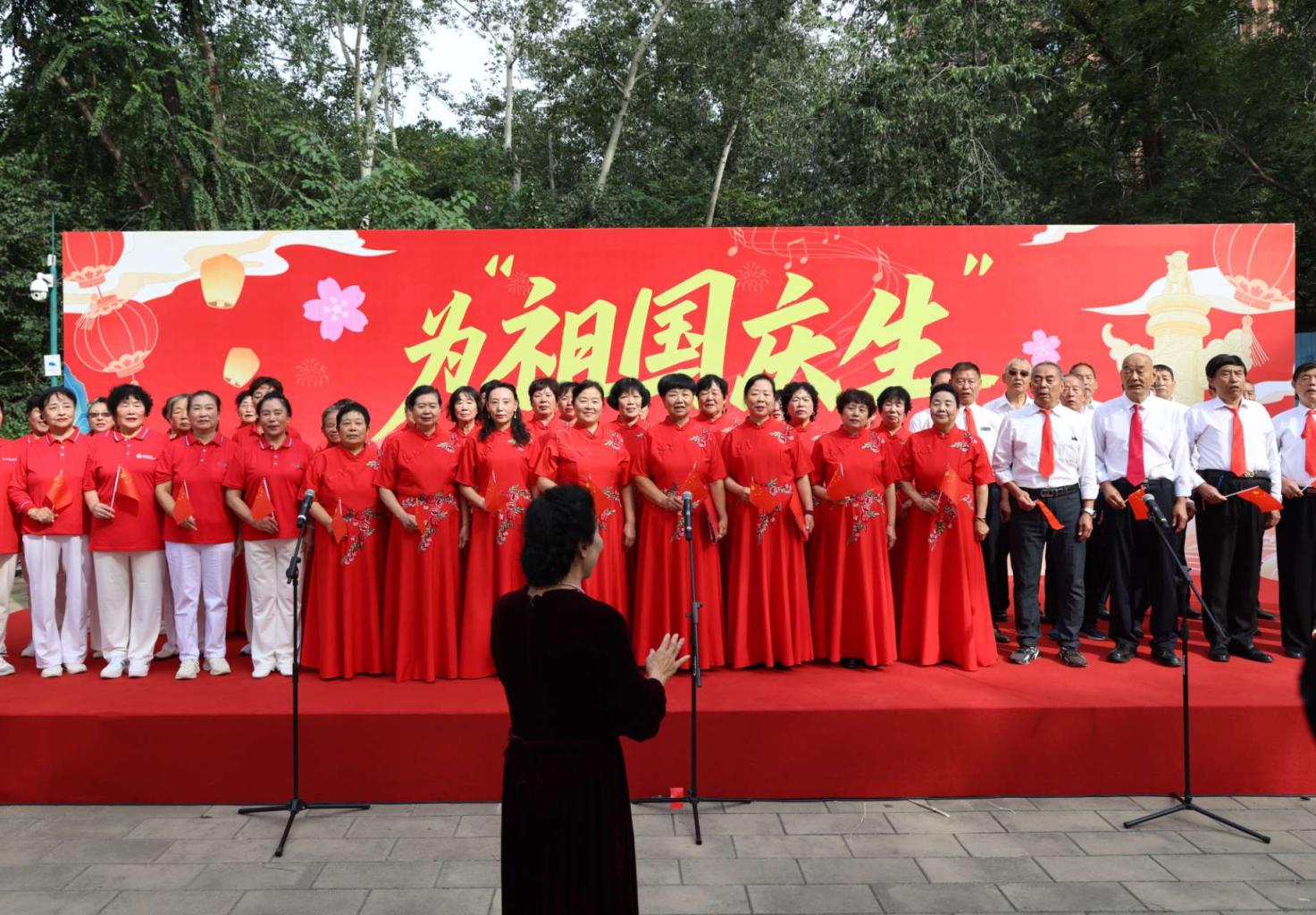 玉渊潭公园门区、中堤桥、西桥、南门桥等景区悬挂红灯笼2000盏,游园主干道布置道旗100组,吸引众多游客驻足拍照。今天上午,公园中堤南口响起《我和我的祖国》的动人旋律,在“为祖国庆生”音乐演绎活动现场,演出团队通过合唱、京剧等多种形式,表达对祖国的深深祝福。现场游客情绪高涨,齐声合唱《我爱你中国》《歌唱祖国》等经典曲目,并挥动手中的国旗,祝福祖国繁荣昌盛。